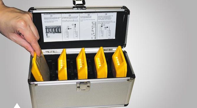 Kofer ima funkciju punjača i sinhronizera. Auto utičnica na 12V